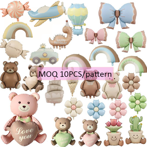 Nuevo oso mate avión Arco Iris pastel de cumpleaños flores globo de aluminio de dibujos animados película de aluminio globos mate