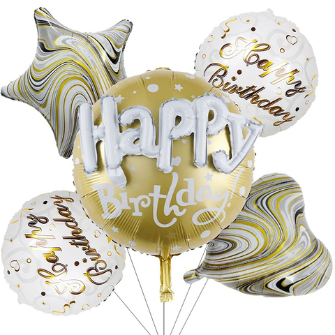 Gran oferta, globos de feliz cumpleaños, Estrella redonda, 5 uds., juego de globos para niños, juegos de globos de cumpleaños, suministros de decoración